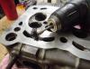 Wie mann gut erkennt, das Ausslaßventil (kleiner Durchmesser) voll mit Ölkohle. Da konnte nichts mehr am Sitz abdichten. Einlaßventile sind von Ölkohle nicht betroffen. Den entsprechend steckt sehrviel Arbeit, speziel Ausslaßventil. Arbeit 16 Ventile bis heute, insgesamt 3,5 Stunden. Das mal so am Rande.